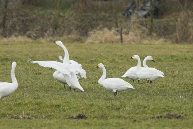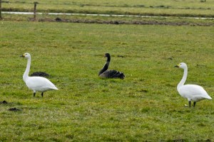 The Bewick’s Swan or Tundra Swan is a well known winter guest of the large grassland area “de Eempolder” near Eemnes and Baarn in the Netherlands. Whooping around, grazing with an escape Black Swan and for many farmers a not welcome grazer.