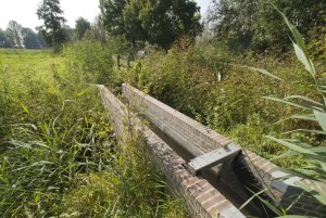 Met deze kanaaltjes en sluisjes wordt maaswater op de vloeiweides gebracht.
