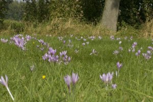 Meadow saffron, colchicum autumnale is very rare flower which grows in three places in the wild in the Netherlands. This is the spot in De Plateaux bij Bergeijk. Lot of other endangered species of flowers there too