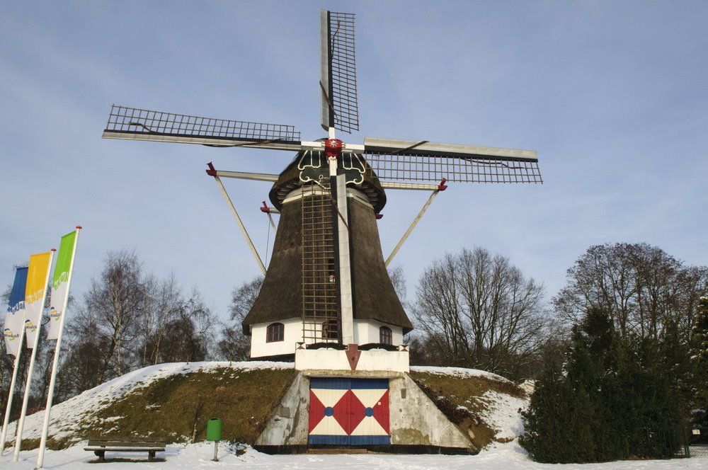 Just looking for beautiful winterscenery, but not found.. not what I espected. As riding around I thought I could make some more windmill images. I’ve got about 250 different mills, but there are a lot more here. These are made in the surroundings of Groesbeek and Kleve in Germany (a few kilometers on the other side of the border) These were rather special at least, the first one is new rebuild I presume, south of Lottum, on Google-maps there is no mill to find on that spot…, and it was not on the road map. The second is a normal Belt-mill standig between Heijen and Afferden, the third (Groesbeek) has a special wingsystem, the fourth, standing in Donsbrüggen near Kleve has a very special pair of wings and has a self setting mechanism to put the wings in the wind. And the last one in Keeken, on the other side of the border near Millingen aan de Rijn has a house underneath it in the “belt” or hill.
