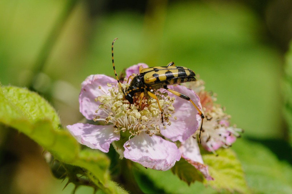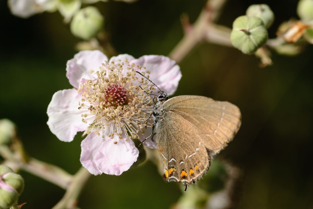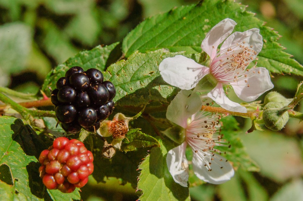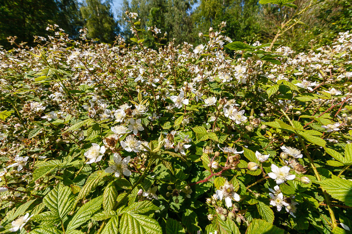 Kijk hier ook eens op de wikipedia pagina, die nog wat verder gaat dan alleen ons land, naar de soorten nachtvlinders waar de rupsen van bramen afhankelijk zijn en de bladmineerders die specifiek in bramenblad leven. En dan hebben we het nog niet eens over de insecten die in de vruchten leven, of die wilde bijen die hun nest maken in dode braamstengels die rechtop staan, of de gallen die er op te vinden zijn en dan natuurlijk de meer generieke soorten die op de nectar en het stuifmeel afkomen, honderden soorten insecten! en de dieren die de vruchten eten. tientallen vogelsoorten, muizen soorten, eekhoorns, vossen , marterachtigen, grote grazers, die trouwens ook het blad en de takken eten, ondanks de stekels. Ze mijden ze als ze kunnen, maar als er niets anders meer is… en dat is juist zo belangrijk voor bosvorming. Omdat grote grazers gemakzucht zijn lopen ze om de enorme stekelbossen heen en daardoor kunnen bomen en struiken juist opkomen en doorgroeien zonder afgeknaagd te worden.